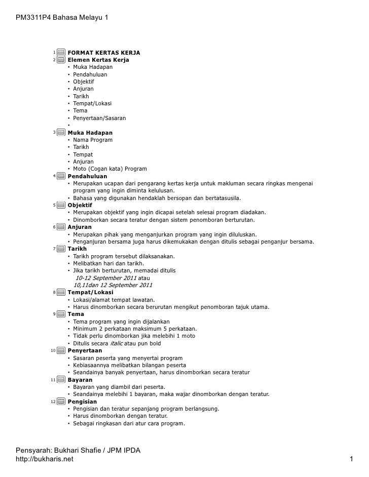 Close suggestions Search Search. PM3311P4 Bahasa Melayu 1 1 FORMAT KERTAS KERJA 2 Elemen Kertas Kerja Muka Hadapan Pendahuluan Objektif.